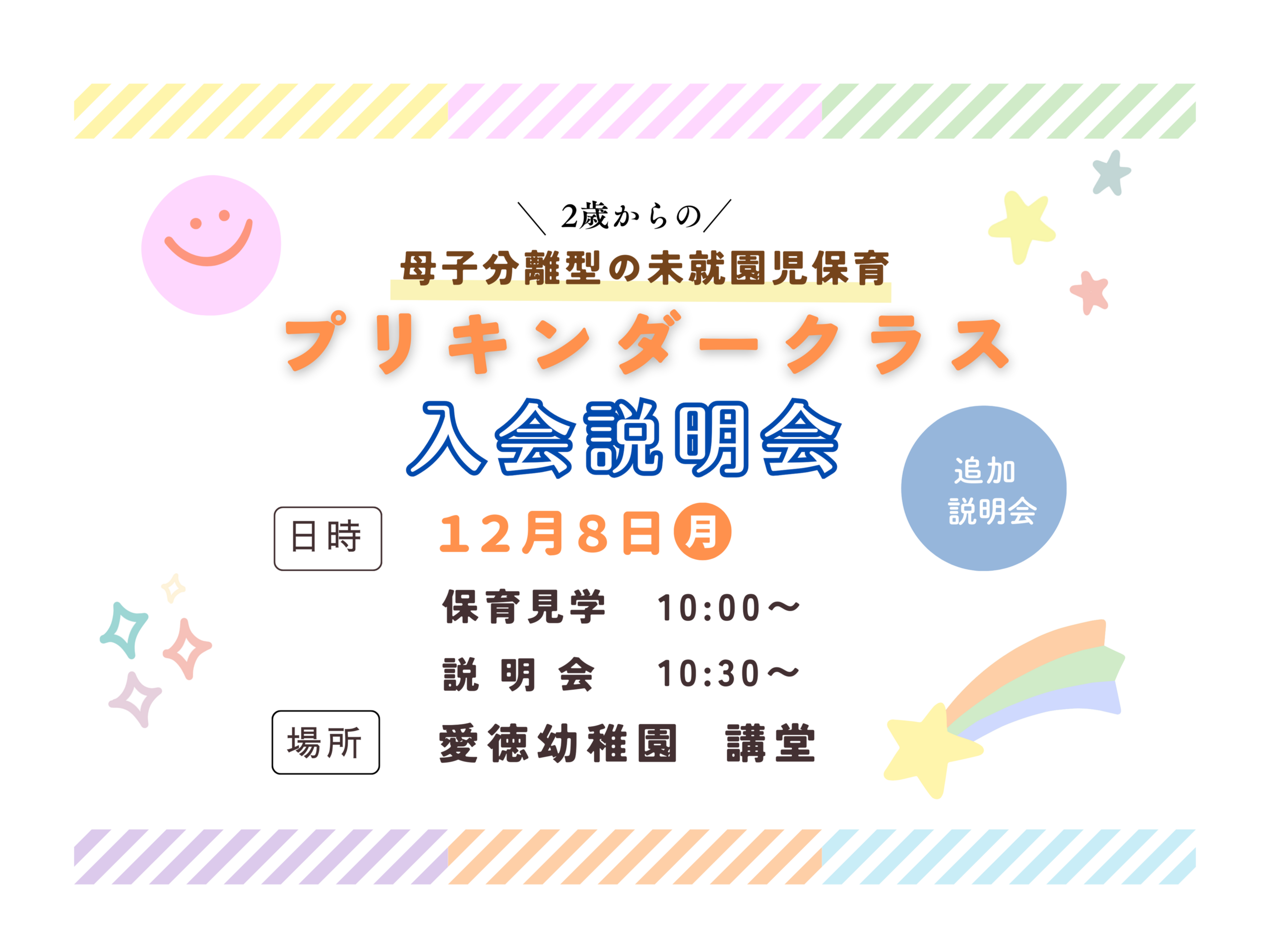 2026年(令和8年)度に2歳児となられるお子さまの保護者の皆さまを対象に、当園の「プリキンダークラス(母子分離型)」追加説明会を開催いたします。