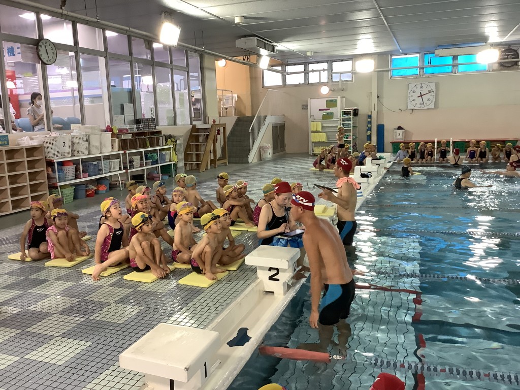 年長組 スイミング 2023.07.13 イベント 1学期最後のスイミングに行ってきました。ドキドキで始まったスイミングですが、すっかり慣れてきて、スイミングが楽しくなってきた子どもたちです。コーチとも信頼関係も出来てきました。コーチに甘えてくっついていったり、出来るようになった事をコーチから褒めてもらったり、、、互いに関係を深めていっています。今日はテスト日でした。合格したことが嬉しくて、「合格したんだよ」と、満面の笑みで知らせてくれました。2学期のスイミングに期待をもって終える事ができました。2学期も元気に泳げますように、、、