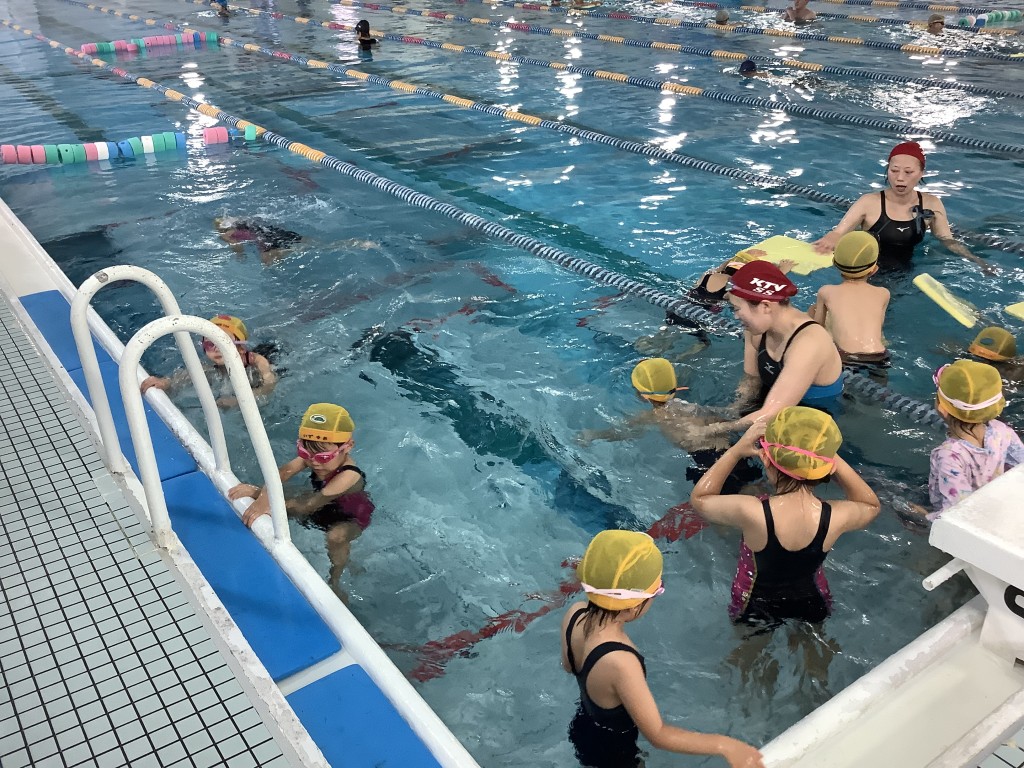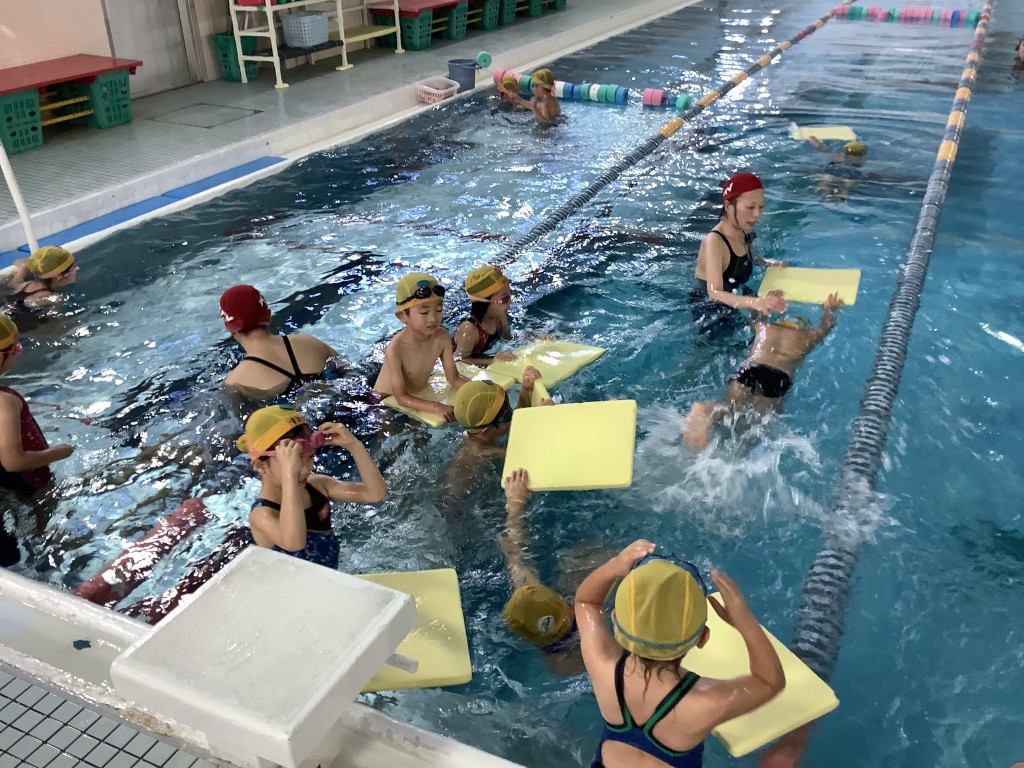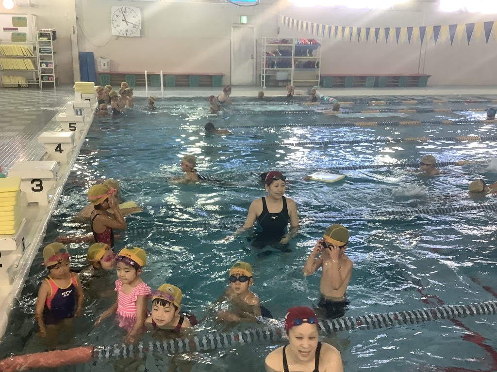 年長組 スイミング 2023.12.14 イベント 今日は、今年度最後のスイミングでした。今日も朝から張り切って、スイミングに行きました。1学期は水に顔をつけることが怖かったお友達が、2学期はできるようになったり、泳ぐのがさらに上手になったり、子どもたち一人ひとりの成長を感じることができました。来年も楽しくスイミングに行きましょうね!