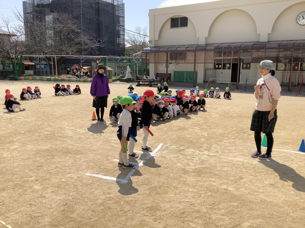 年中組 最後のすだちっこデー 2024.03.15 イベント 今日は年中組最後のすだちっこデーでした。 お別れ会でみんなで踊ったフォークダンスを楽しく踊り、リレーをしました。最後まで一生懸命走ってバトンを渡す、ということを目標に頑張りました。力一杯走る姿は、とってもかっこよかったです。お友達の応援も元気いっぱいでした。 悔しい思いをしたお友達もいましたが、最後まで頑張ったみんなは1等賞でした!年長組になっても、どんなことにもチャレンジする強いお心でいてくださいね!