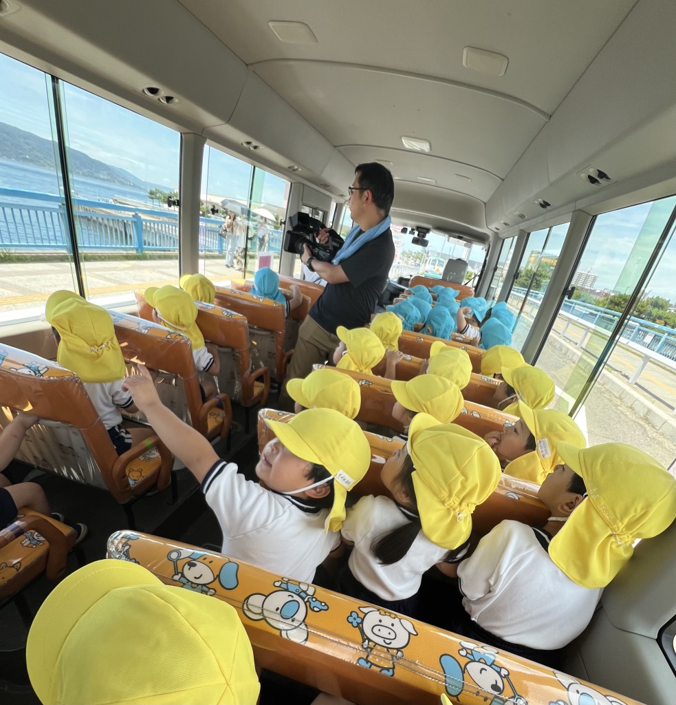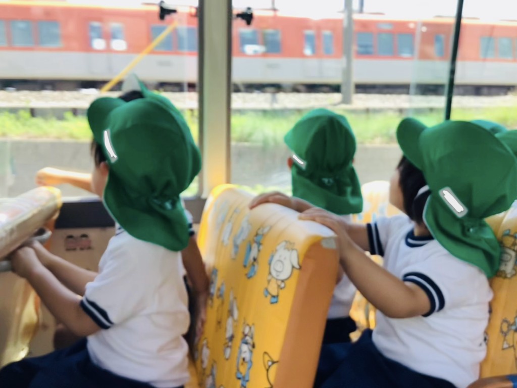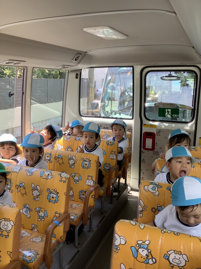 年少組・そら組 バスドライブ 2024.07.08 イベント 今日は待ちに待ったバスドライブの日でした。とても良いお天気の中、ドライブに行くことができ、外の景色やバス内での会話を楽しんでいました。神陵台愛徳幼稚園の前に停車し、先生方に手を振っていただきました。行ったことのある場所や、おうちの近くを通って、大興奮の子どもたちで、楽しく、安全に行くことができました。