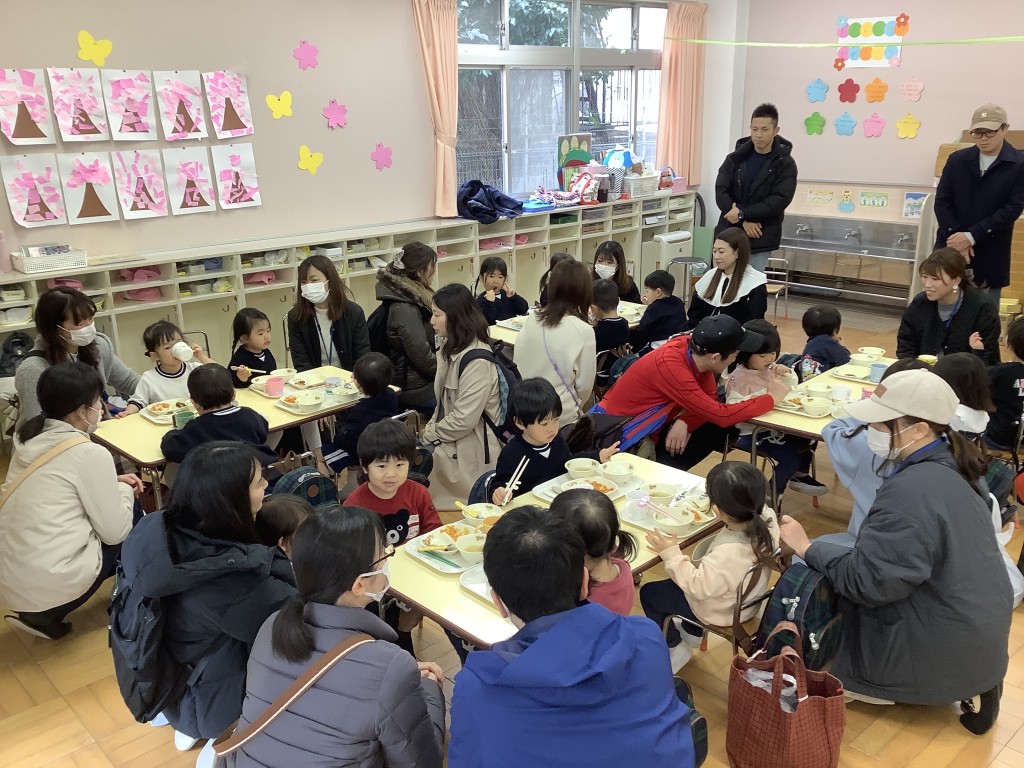 かわいいお口いっぱいに頬張る姿やおかわりをする姿などを参観いただくことができました。