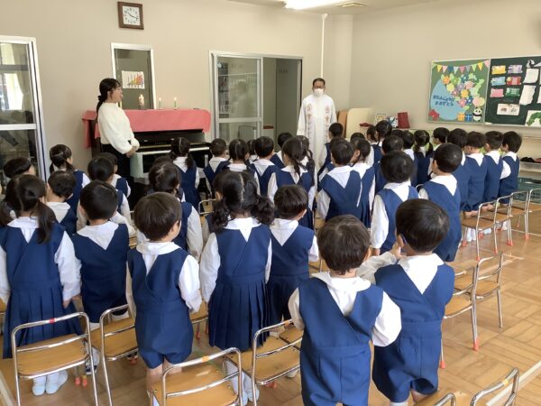 今日は神父様が幼稚園に来てくださり、七五三祝福式がありました。