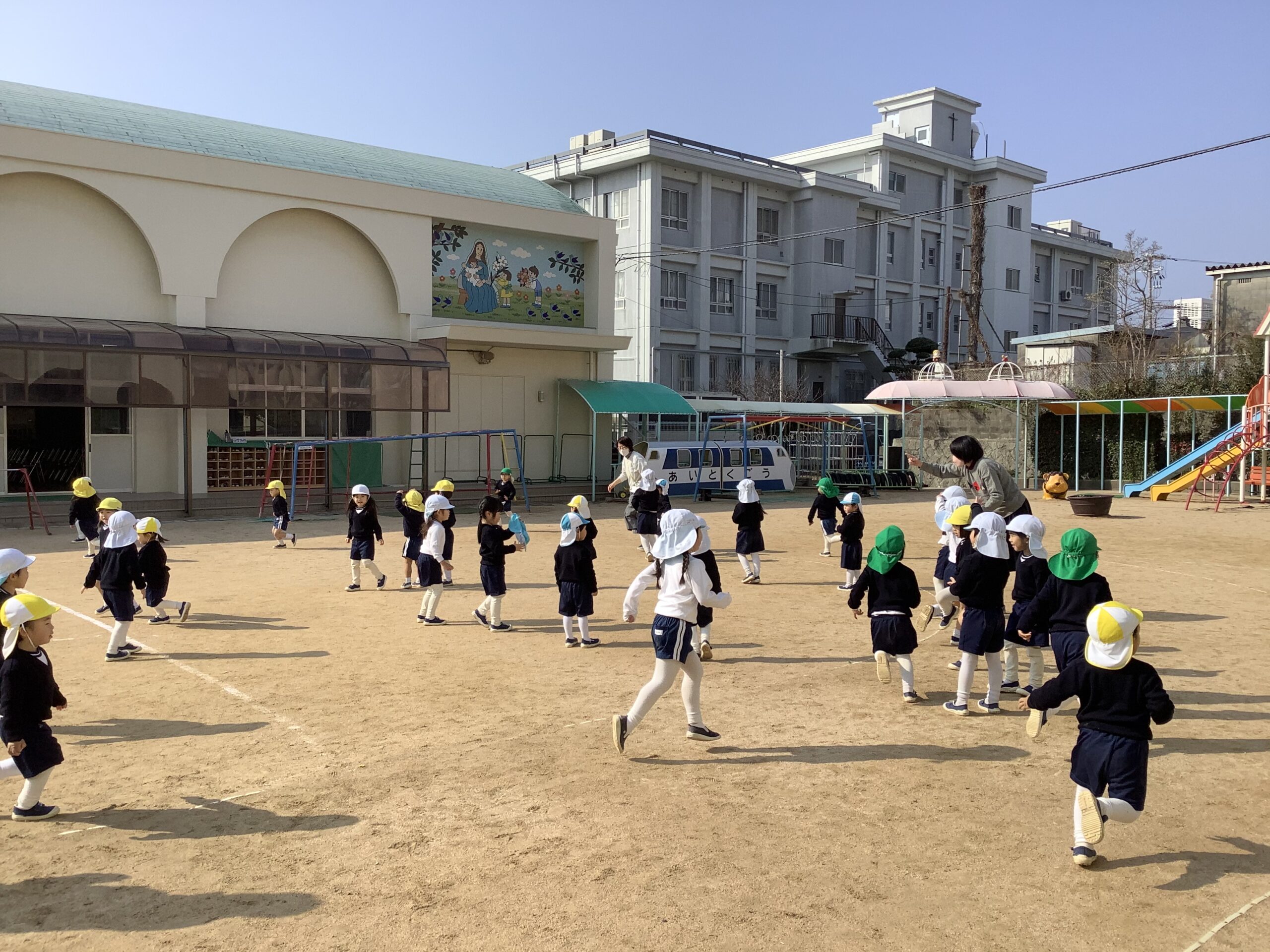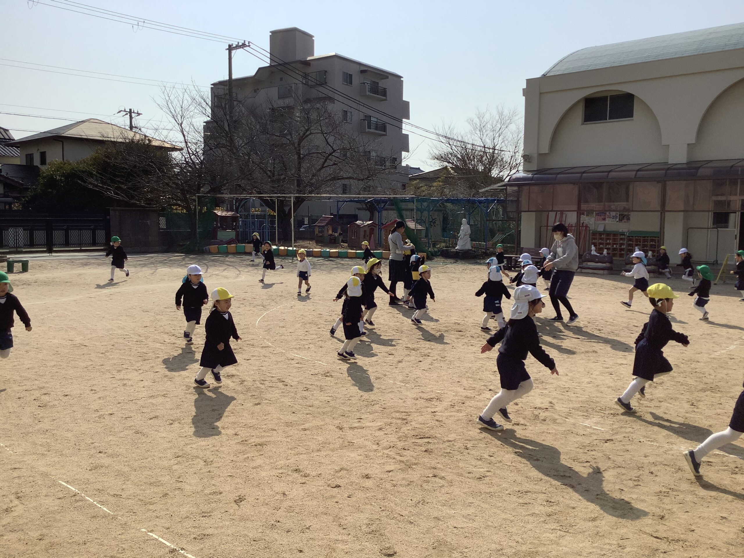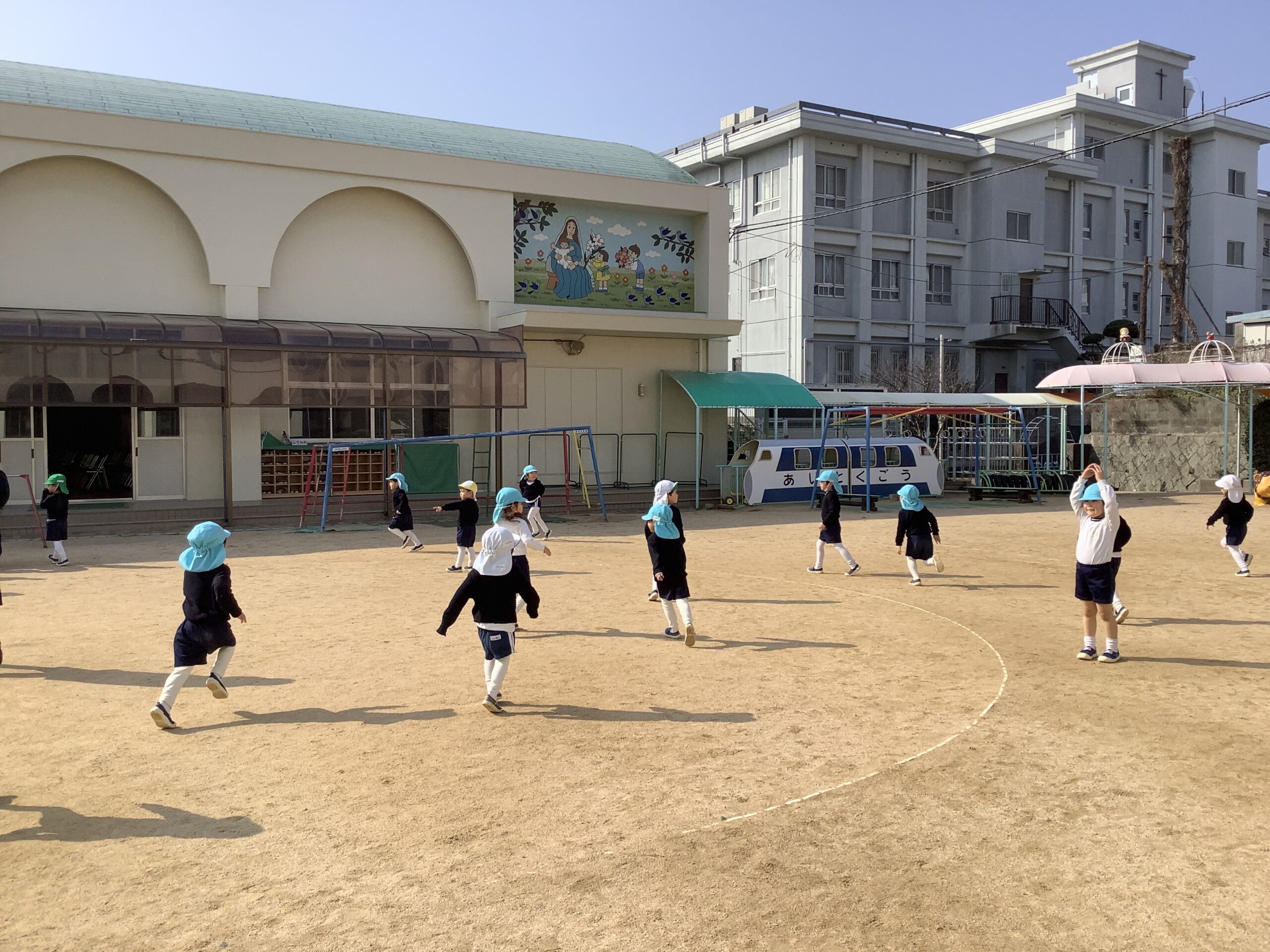 年少組・そら組・ほし組 わくわくday 2026.02.12 イベント 今日は3学期が始まって、初めてのわくわくdayでした。 お日様がポカポカで気持ちのいいお天気の中、みんなで体を動かすことができました。 お話を聞くことが上手になってきた子どもたちです。 今日は、エビカニクスを踊って、雪だるま鬼ごっこをしました。 雪だるまの妖精さんにタッチされたら、雪だるまになってしまう、バナナ鬼の雪だるまバージョンです! 今学期も残りわずかですが、お友だちと一緒に体を動かしたり、少しずつルールのある遊びも取り入れていきながら、楽しんで過ごしたいと思います。